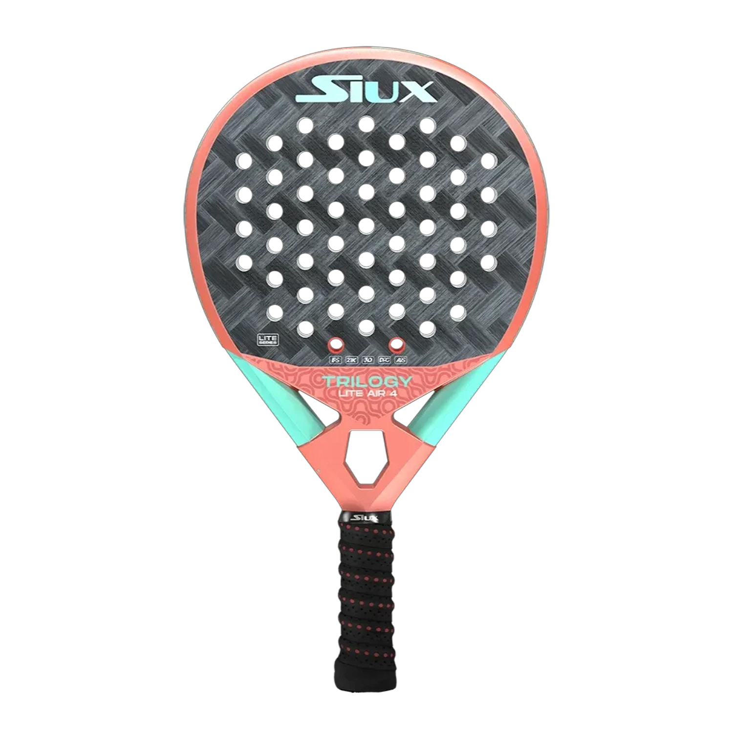The Siux Trilogy 4 Lite Air Women Padel Racquet is designed for female players looking for a lightweight performance racquet, with excellent control, and comfort on the court. It also has a hybrid shape, fiberglass construction, and soft EVA core.